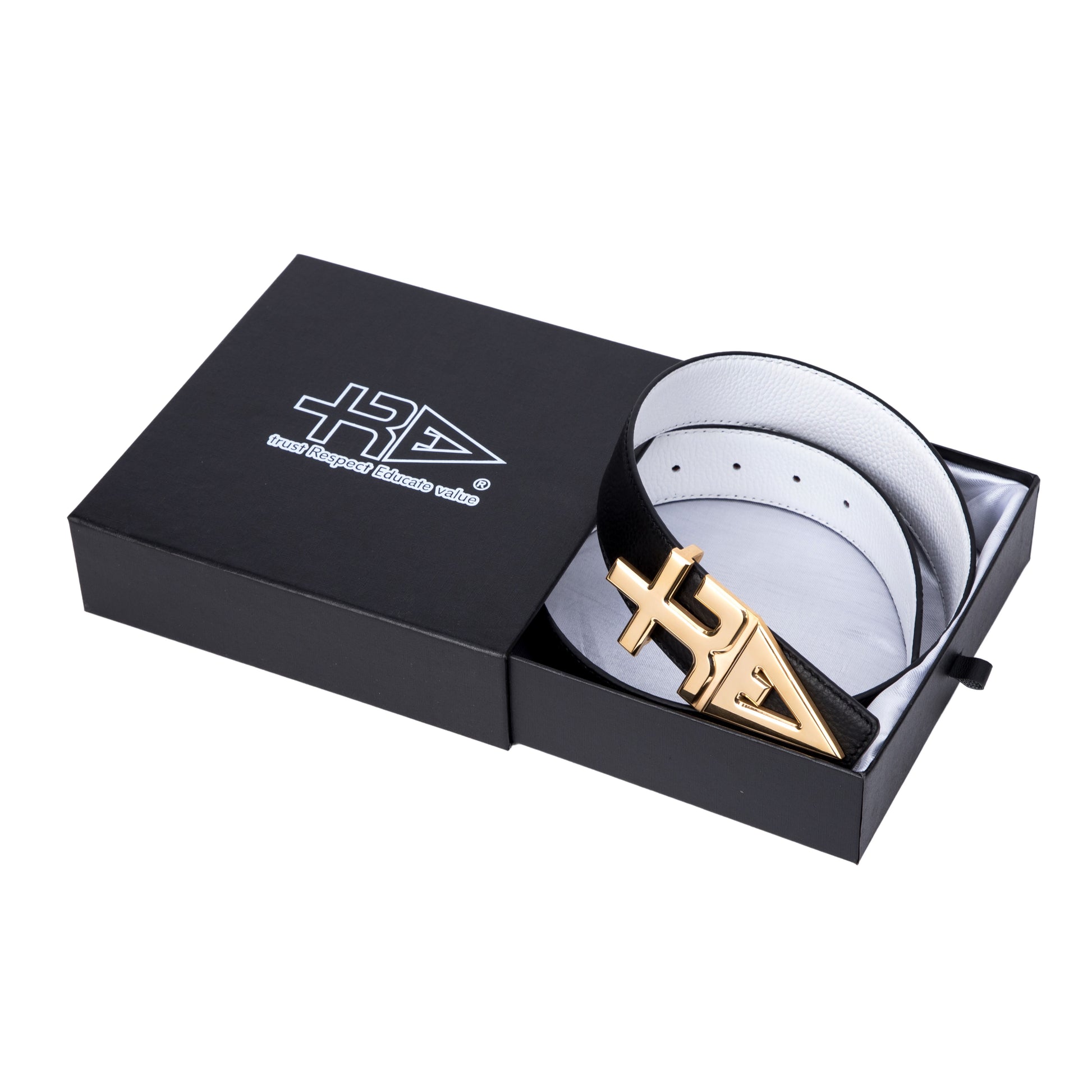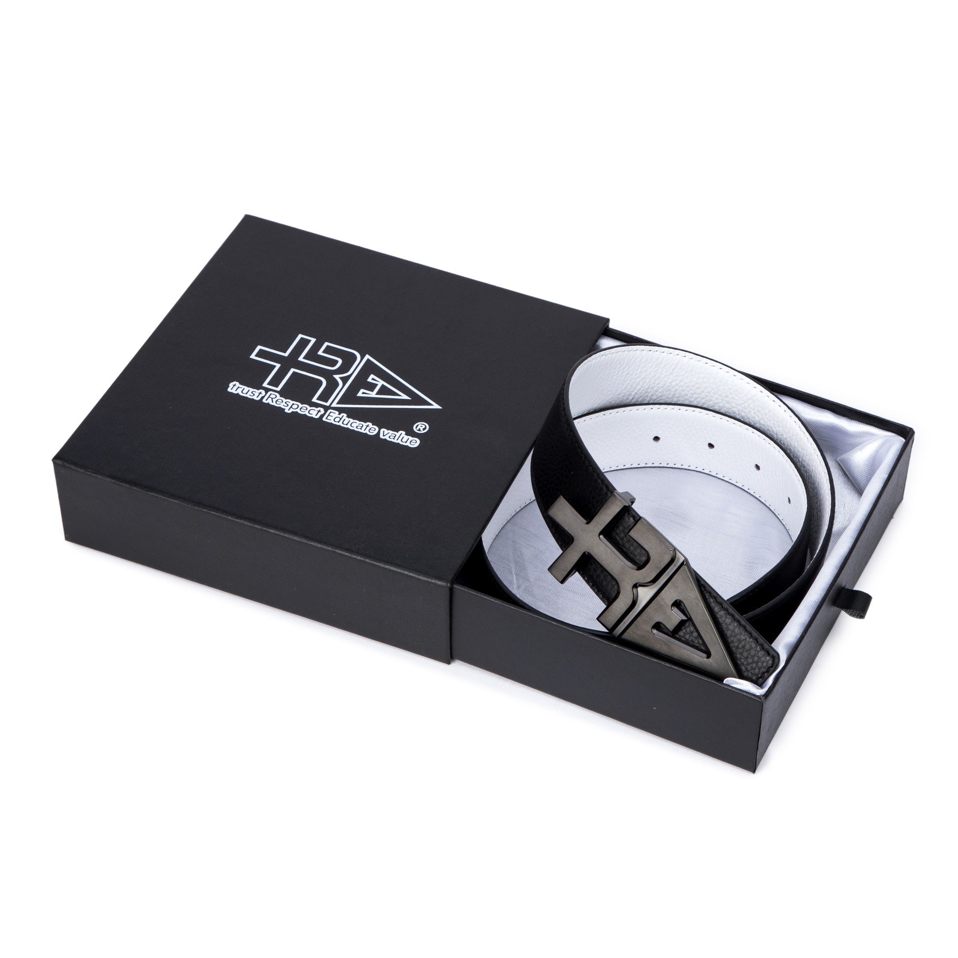 The tREv Signature Belt is a statement in craftsmanship and versatility. Made from premium leather, it features a bold die-cut tREv buckle, offered in Gold, Silver, or Matte Black finishes. With its reversible design, you choose between Black/Brown or Black/Cream White leather—making it two belts in one.